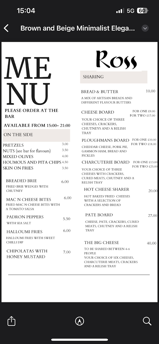 Visiting Ross is more than just a meal; it’s an experience. As Sam recounts, "The food was fantastic and the drinks were great. Roman was an absolutely fantastic host," reflecting the dedication to customer service that truly enhances your visit. The engaging talks with friendly staff make every customer feel like they are part of the Ross family. Plus, with a dog-friendly front area, pet owners can enjoy a meal out without leaving their fur friends at home!